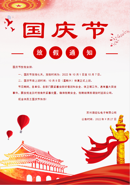 2022年国庆放假通知