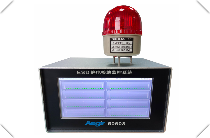 AEGIR50608 intelligent electrostatic grounding resistance monitor, used to monitor whether various equipment grounding, electrostatic grounding wire, production line grounding and electrostatic pile grounding wire is well grounded, or whether the grounding resistance is qualified, whether it meets the electrostatic protection standard, and record the data in real time and upload it to the server. The data can be filtered according to the date at will, and the report can be generated, which is convenient for the customer's audit and production department management. AEGIR50608 is a precision test instrument, which needs to be corrected regularly (once a year).
