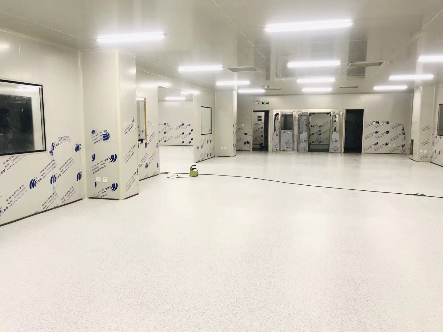 2、风淋室、更衣室、净化间是洁净车间净化系统的三个基本组成部分。风淋室是进出洁净区的通道,利用喷出的高速洁净气流,可以有效并且迅速地清除人体所带的尘埃及细菌。净化间采用夹层彩钢板隔离空间以及墙壁,上部彩钢天花吊顶,地板用环氧树脂铺成。