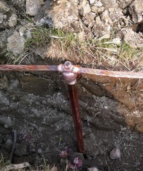 3、 接地干线材料选择:16平方铜包钢软线;连接:钎焊接在一起,再用16m㎡绝缘多股铜芯线焊上引入室内为干线;