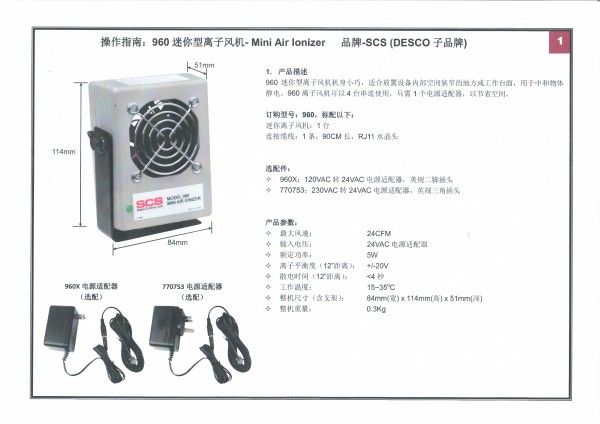 注意:960不含电源适配器,需选配以下电源适配器(1个电源适配器可以为4台离子风机供电)