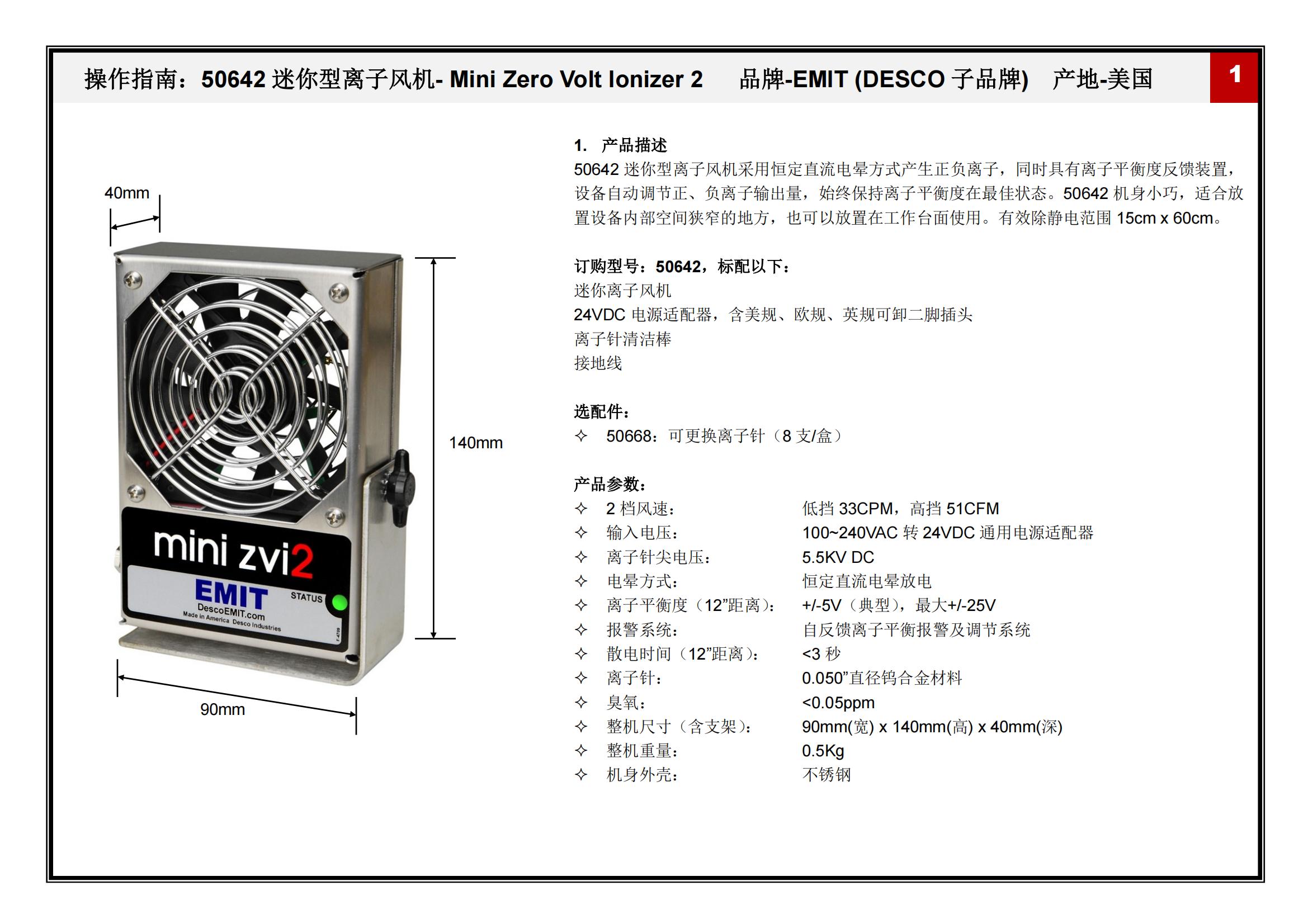 产品描述:迷你型离子风机,自反馈离子平衡系统,不锈钢机身