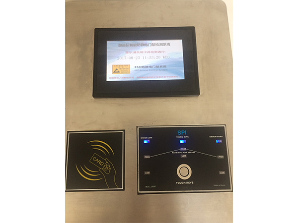 1、 操作人员需要检测静电鞋时,测试人员双脚站到电阻传感器脚踏板(上)