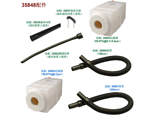 35844吸尘器配置HEPA级别过滤器,大于等于0.3微米的颗粒物捕集效率达到99.97%以上,适用于捕集空气灰尘、碳烟、花粉、墨粉、铅粒、挥发性等颗粒物。